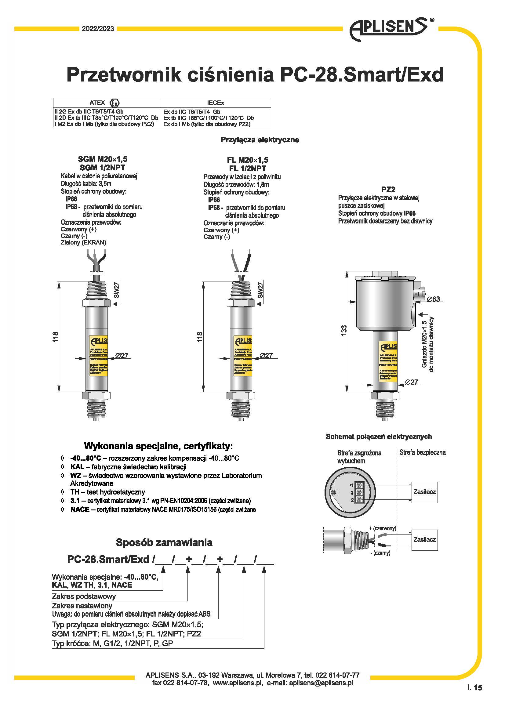 4 ÷ 20 mA輸出信號+ Hart 協(xié)議。基本誤差0.1%ATEX證書